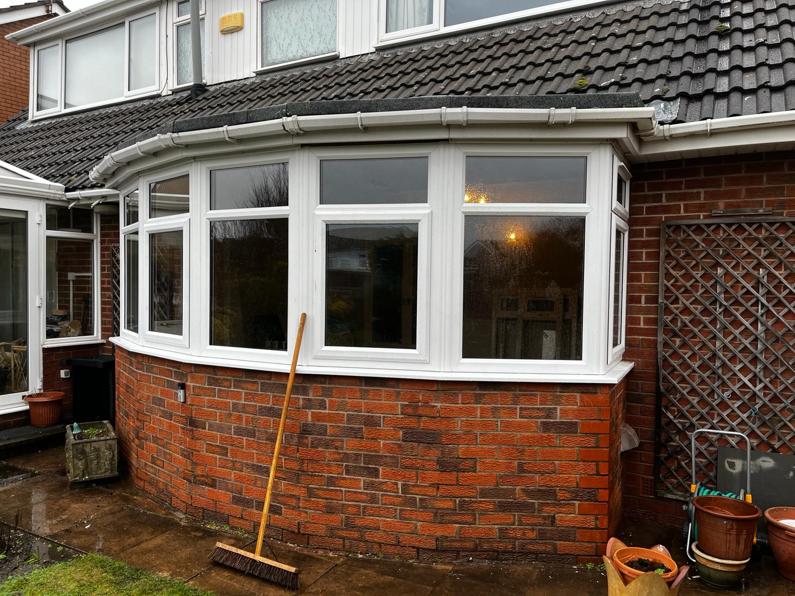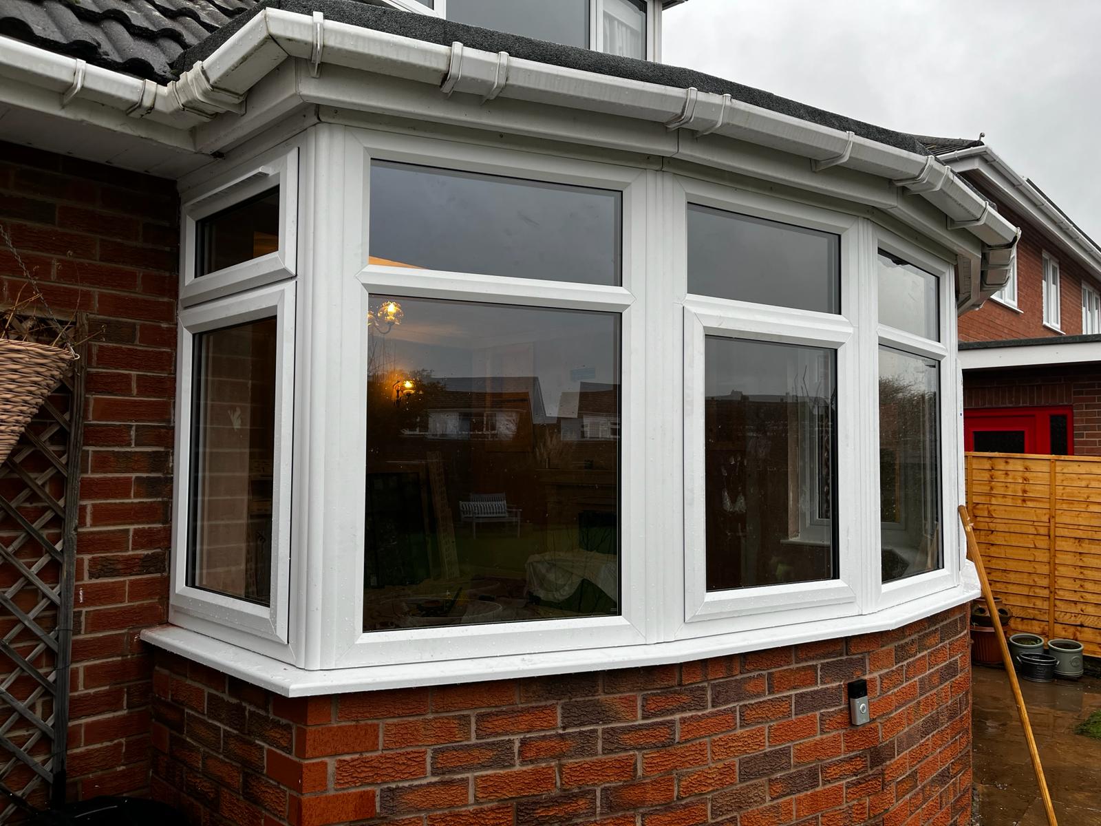 This installation consisted of seven individual window sections, carefully measured and fitted to create a seamless curved bay formation. The new white PVCu bay window provides: