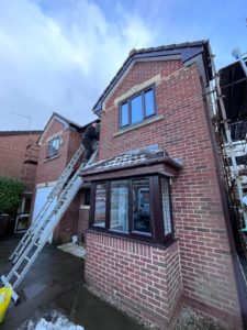 This recent project in Skelmersdale involved a complete exterior upgrade, including the removal of original timber windows, timber doors and ageing fascia boards, replacing them with modern Rosewood on White PVC windows, doors and roofline products.